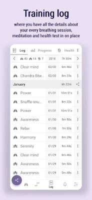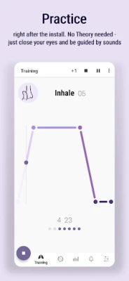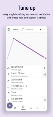 * Regularly updated database of more than 50 training patterns, such as: 4-7-8 breathing, Kapalbhati, Anulom Vilom, Nadi Shodhana, Tummo / Inner fire, Udgeeth, etc.